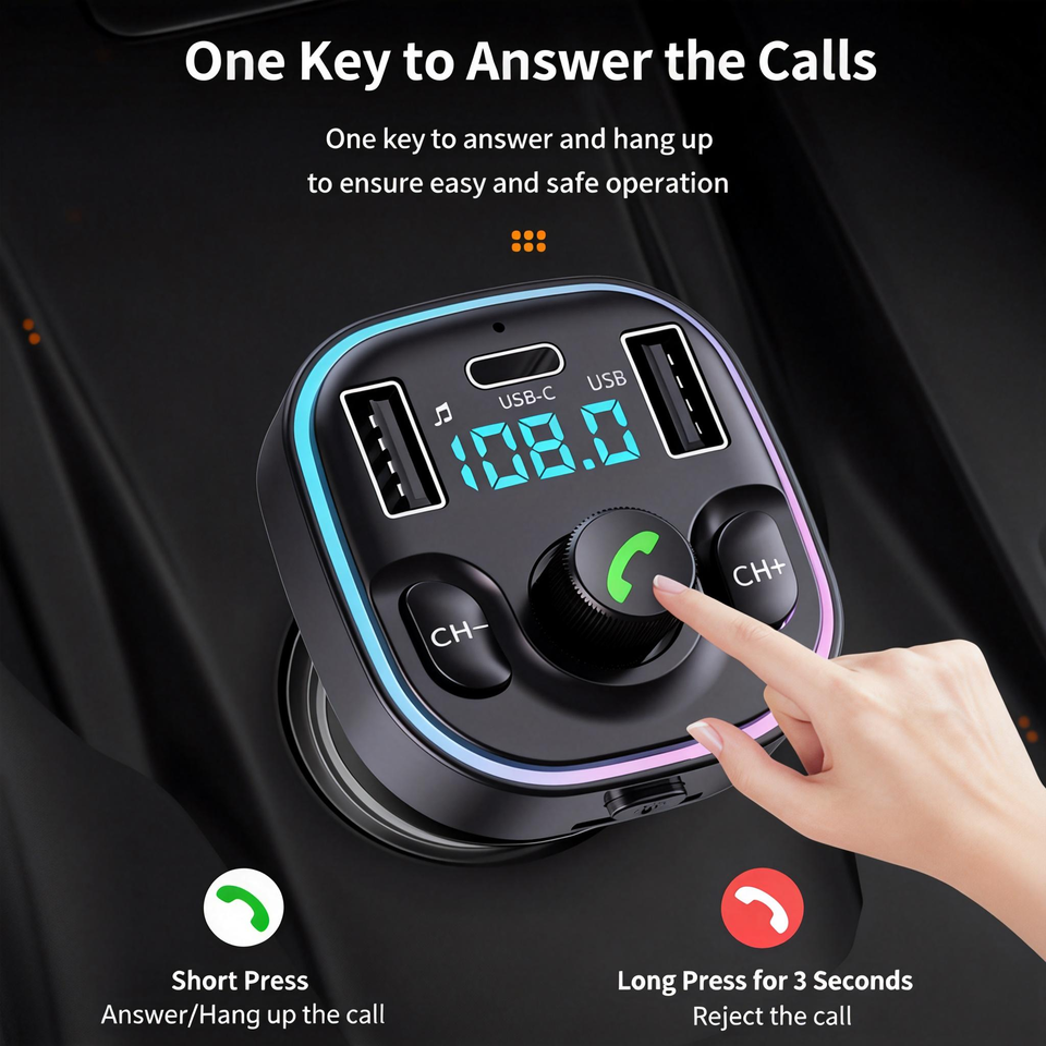 Microphone intégré, Transmetteur fm, Chargeur de Voiture, Mains-libre