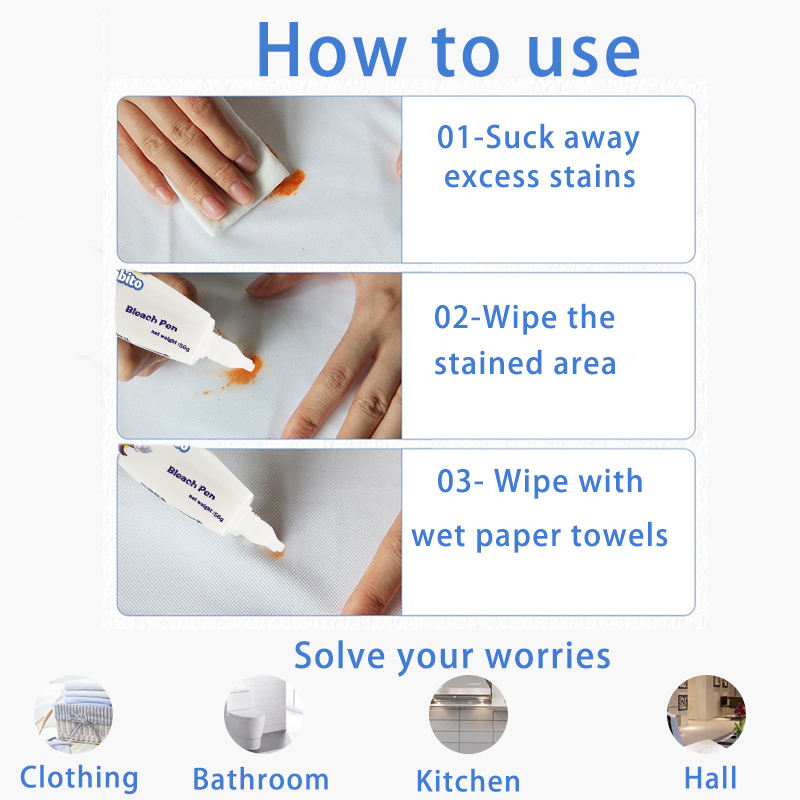 Portable Heavy Duty Détachant Blanchisserie Vêtements Moule et Moisissure Removers Gel Bleach Pen