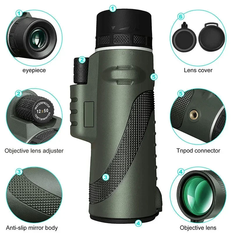Télescope monoculaire portable haute définition 80X100 Zoom pour les activités de plein air chasse Camping Smartphones compatibles