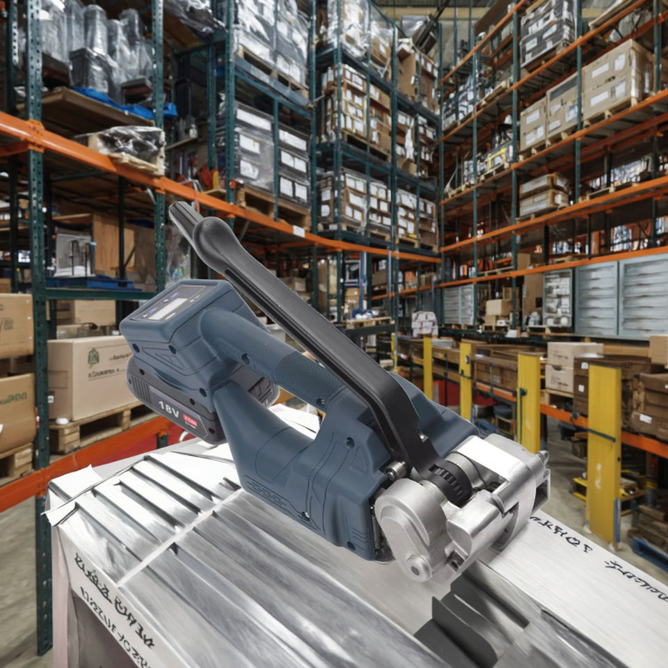 Enrouleur de bande plastique et acier portable, automatique, industriel, électrique, haute efficacité, modèle V1, compatible avec les emballages de boissons et de produits alimentaires