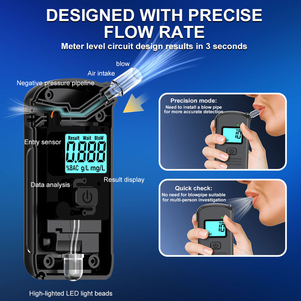 Testeur d'alcool portable de haute précision à usage domestique auto-test soufflant rapidement de l'air pour la conduite en état d'ébriété pendant la nuit