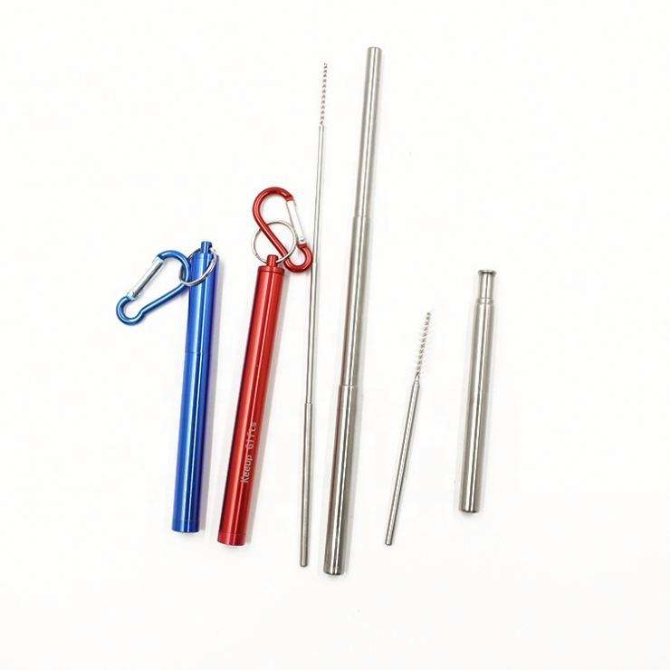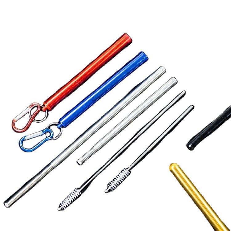 Pailles de voyage télescopiques réutilisables haut de gamme portables, personnalisables avec logo, en acier inoxydable, pliables et rétractables
