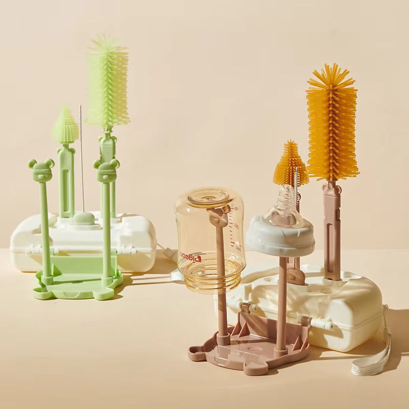 Portable vente chaude écologique 360 degrés rotatif Silicone biberon nettoyage bouteille brosse et égouttoir support