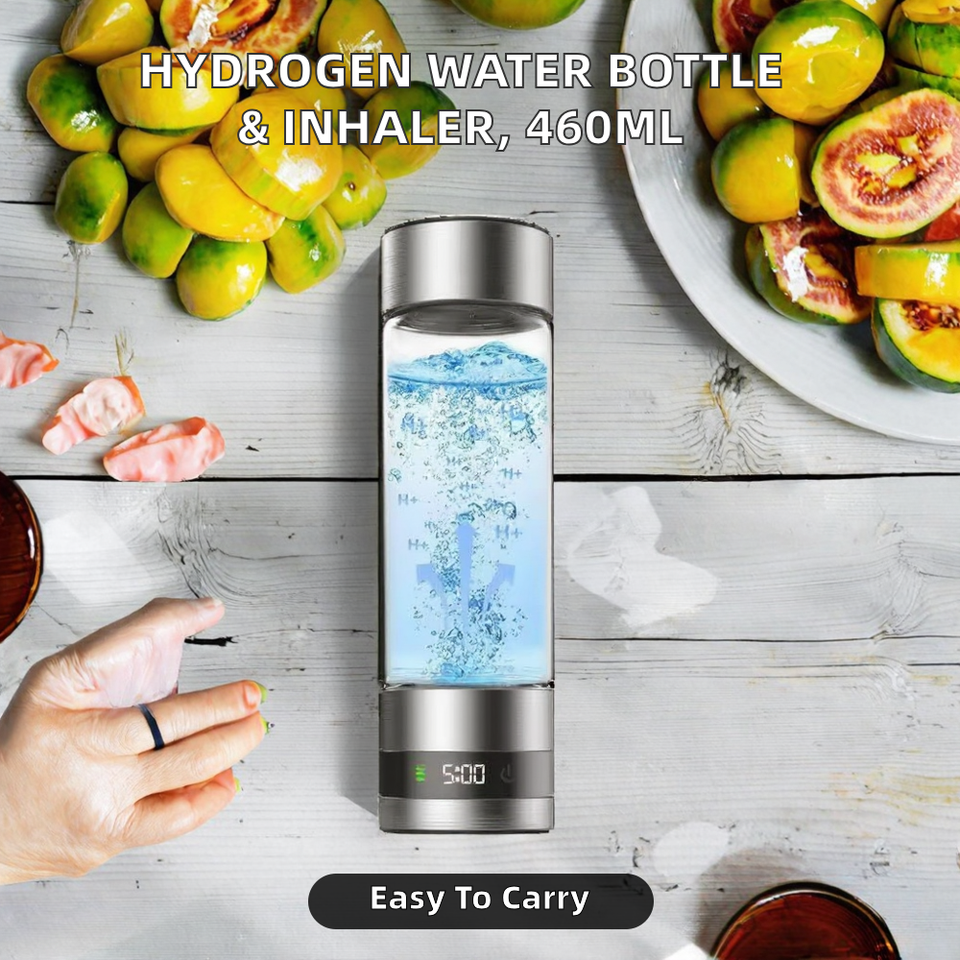 Bouteilles d'eau hydrogénée portables pour la maison et la voiture, 460 ml, 3 en 1, verre, acier inoxydable, support, 1500 PPB, appareil à boire à l'hydrogène