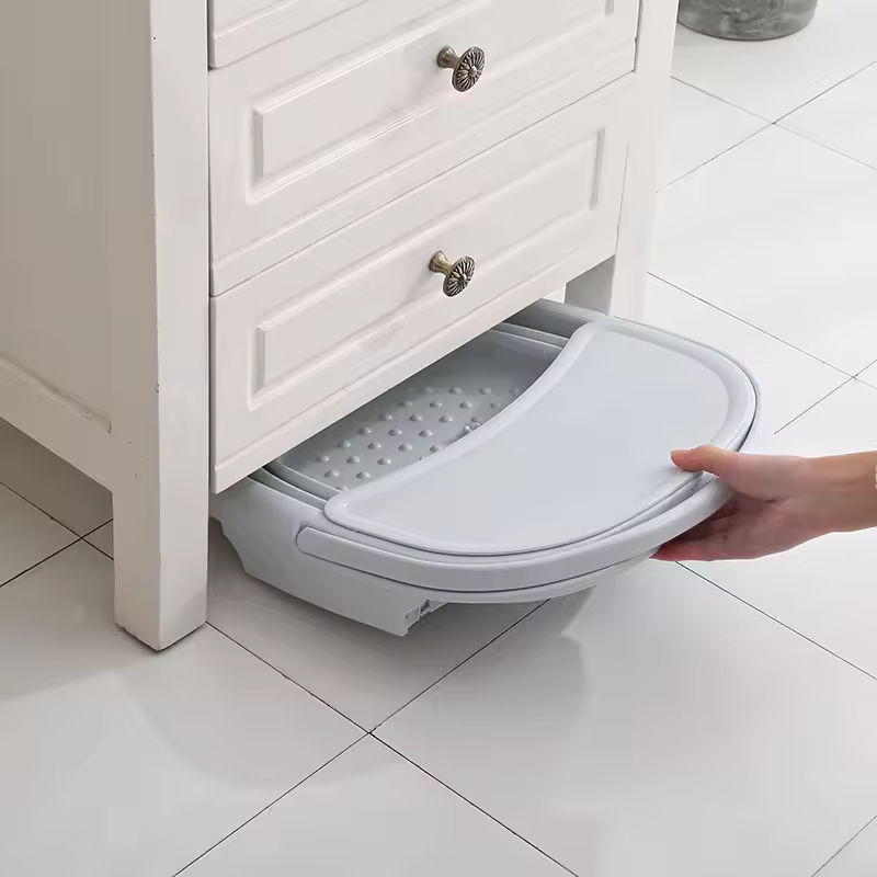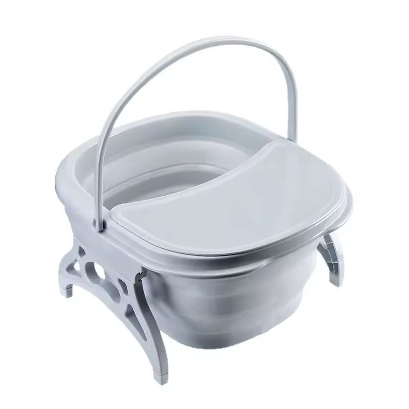 Bassin pliable multifonctionnel portable pour bain de pieds domestique avec couvercle isolant épaissi – Seau de lavage des pieds en plastique