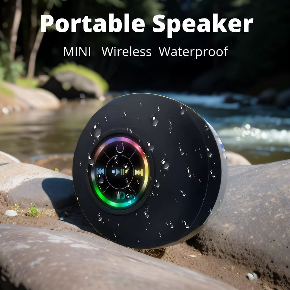 Portable IPX4 étanche pour V5.0 sans fil Subwoofer haut-parleur RGB LED Mini USB Rechargeable ventouse support pour ordinateur