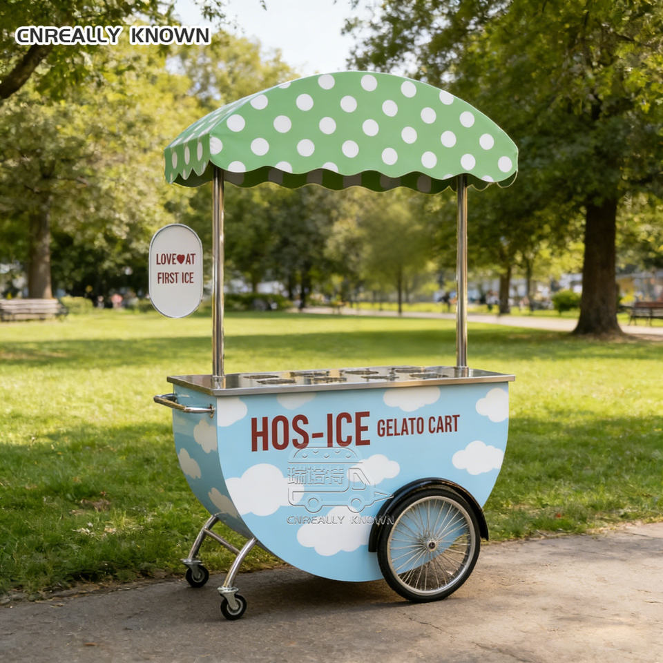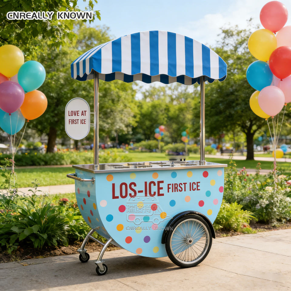 Chariot mobile portable pour la vente de glaces en extérieur avec auvent pour plage, parc, mariage, fête, vente de nourriture