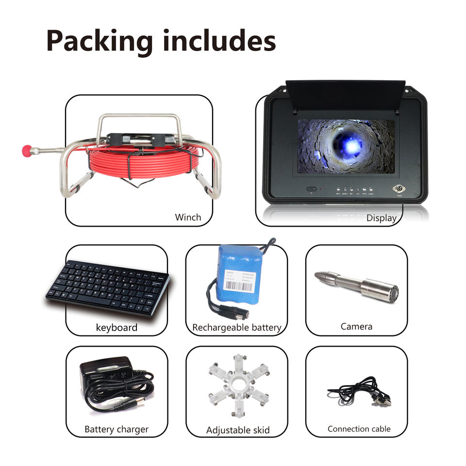 Caméra d'inspection de tuyaux de drainage avec câble de 7 mm et carte 8 Go Vi