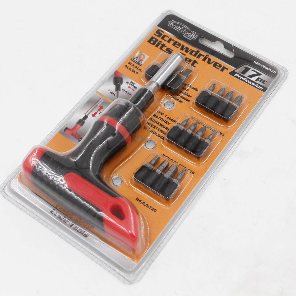 Portable Industrial T-Type Screwdriver Set Second Generation 17-Tooth Forward Reverse Plastic Ratchet with Included Allen Bit