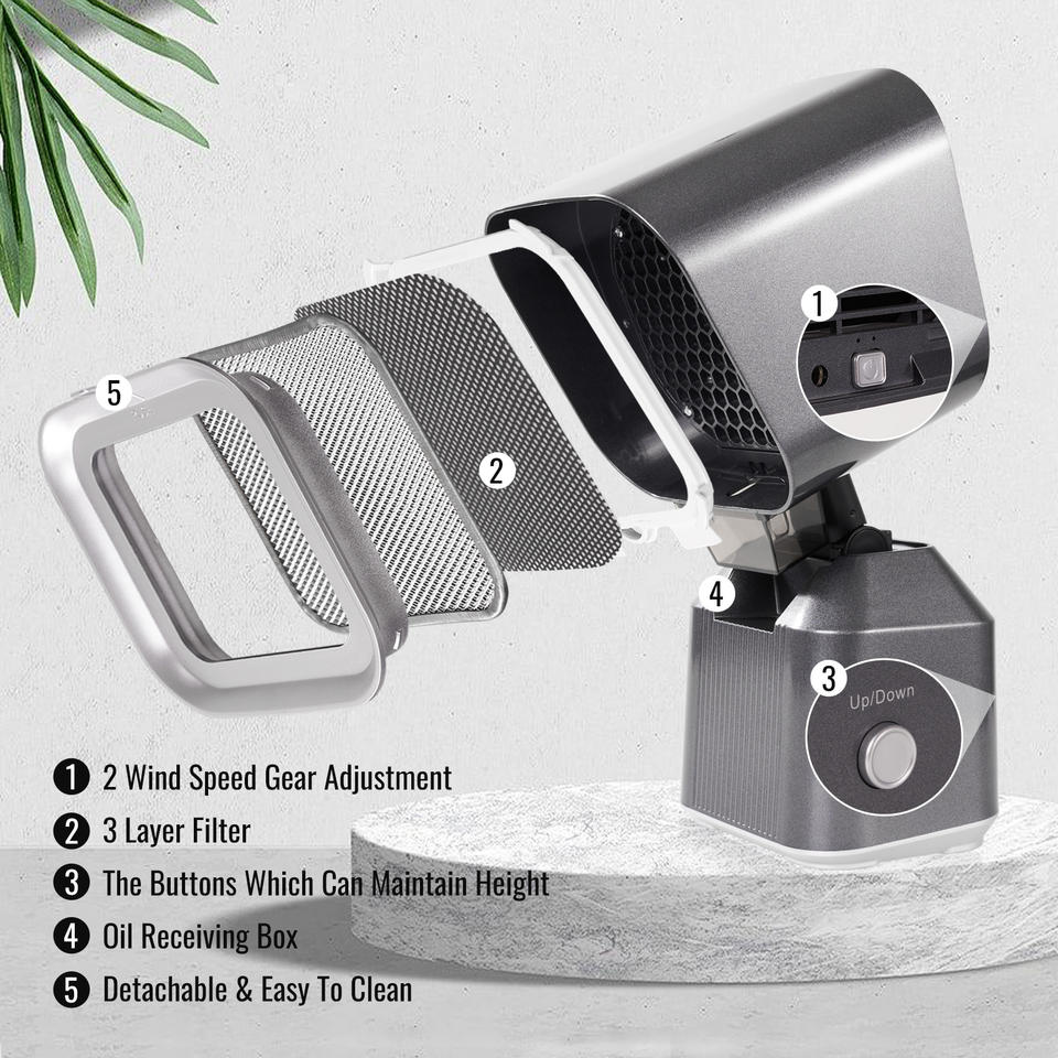 Hotte de cuisine portable à hauteur et angle réglables, filtre 3 couches pour barbecue intérieur, cuisinière et absorbeur de fumée
