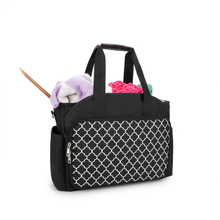 Sac à main portable en fil tricoté, sac en laine, sac à crochet avec poche séparée pour ranger les aiguilles à tricoter