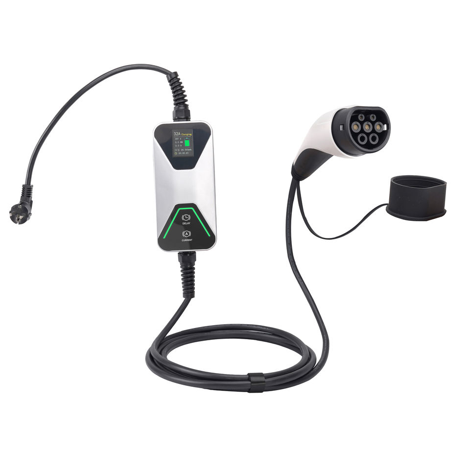 Chargeur de voiture électrique portable LCD nouvelle conception 7 kW 32 A Type 2 pliable intégré avec câble de charge pour VE à économie d'énergie