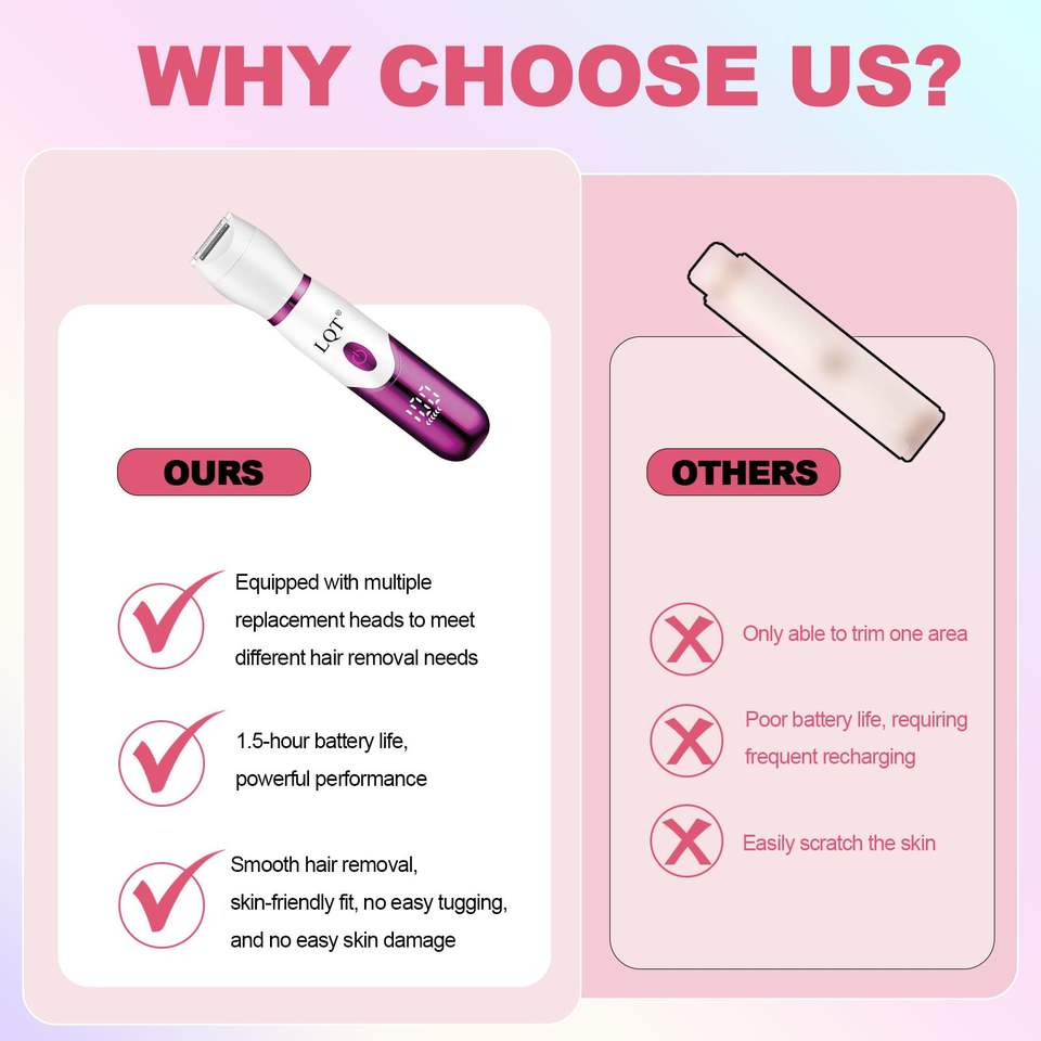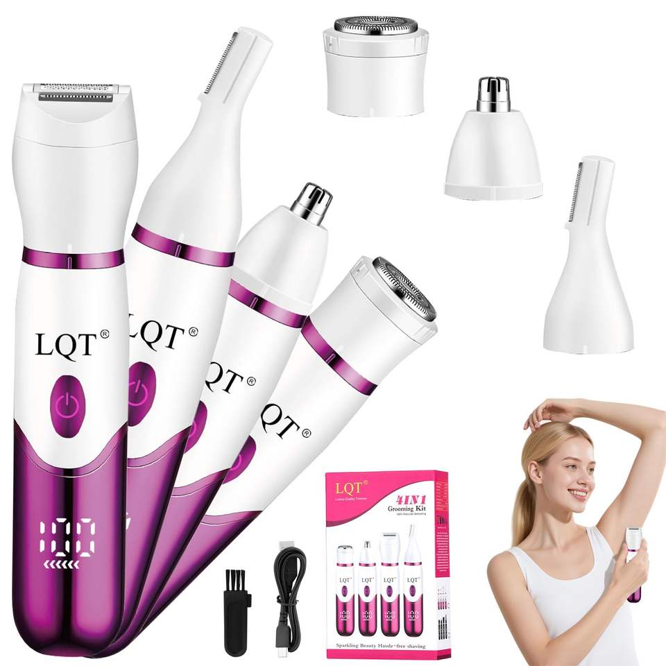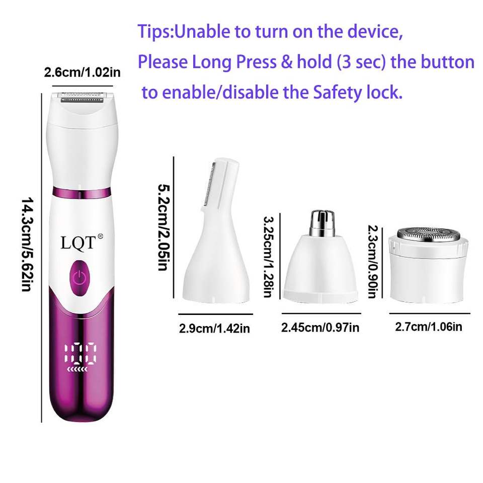 Épilateur électrique portable 4-en-1 avec écran LED pour sourcils, maillot et visage – Tondeuse corporelle pour femme
