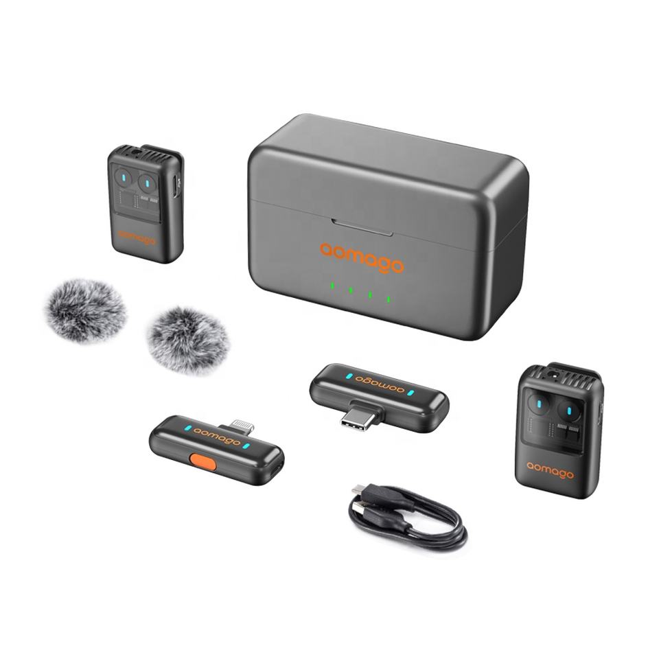 Microphone Lavalier Portable Sans Fil avec Réduction de Bruit pour Enregistrement, Étui de Chargement, Compatible Android, iPhone et Caméra