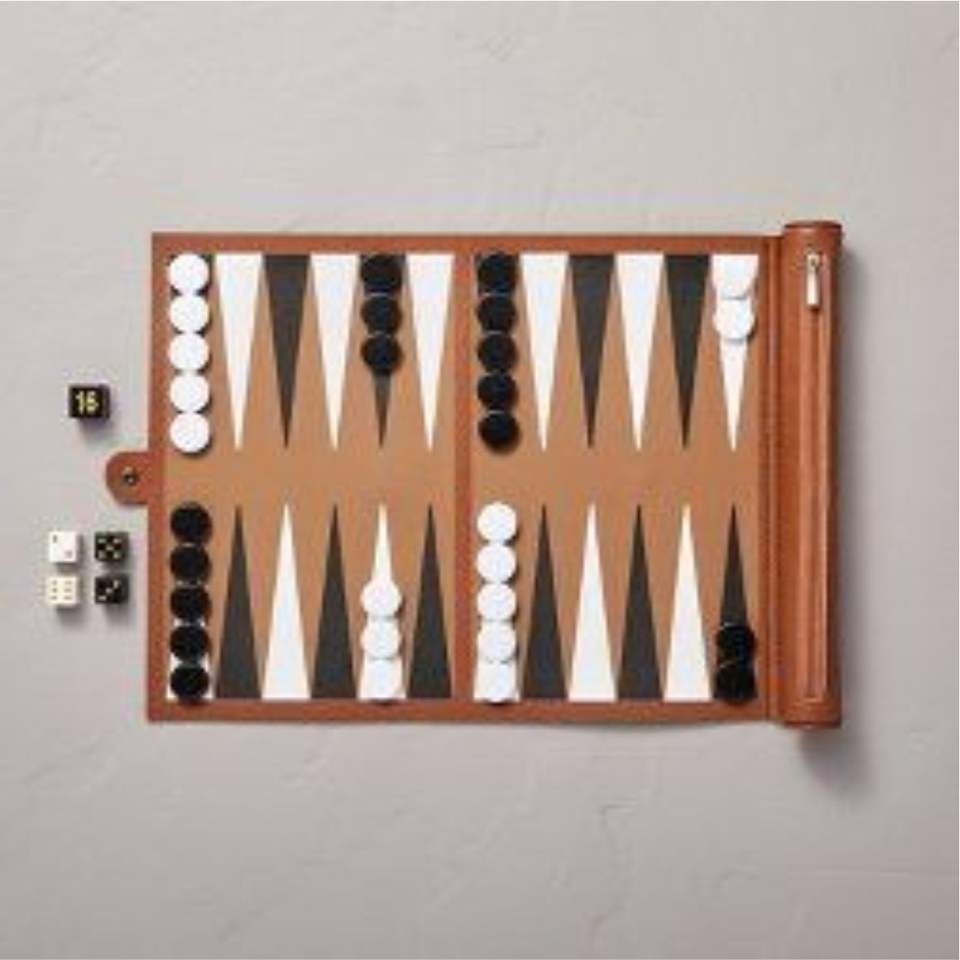 Jeu de backgammon portable en cuir enroulable, format voyage, plateau en daim avec dés et pions, jeu de backgammon pliable léger