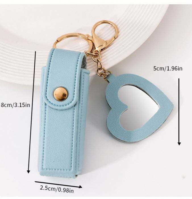 PU lip stick bag with mirror keychain