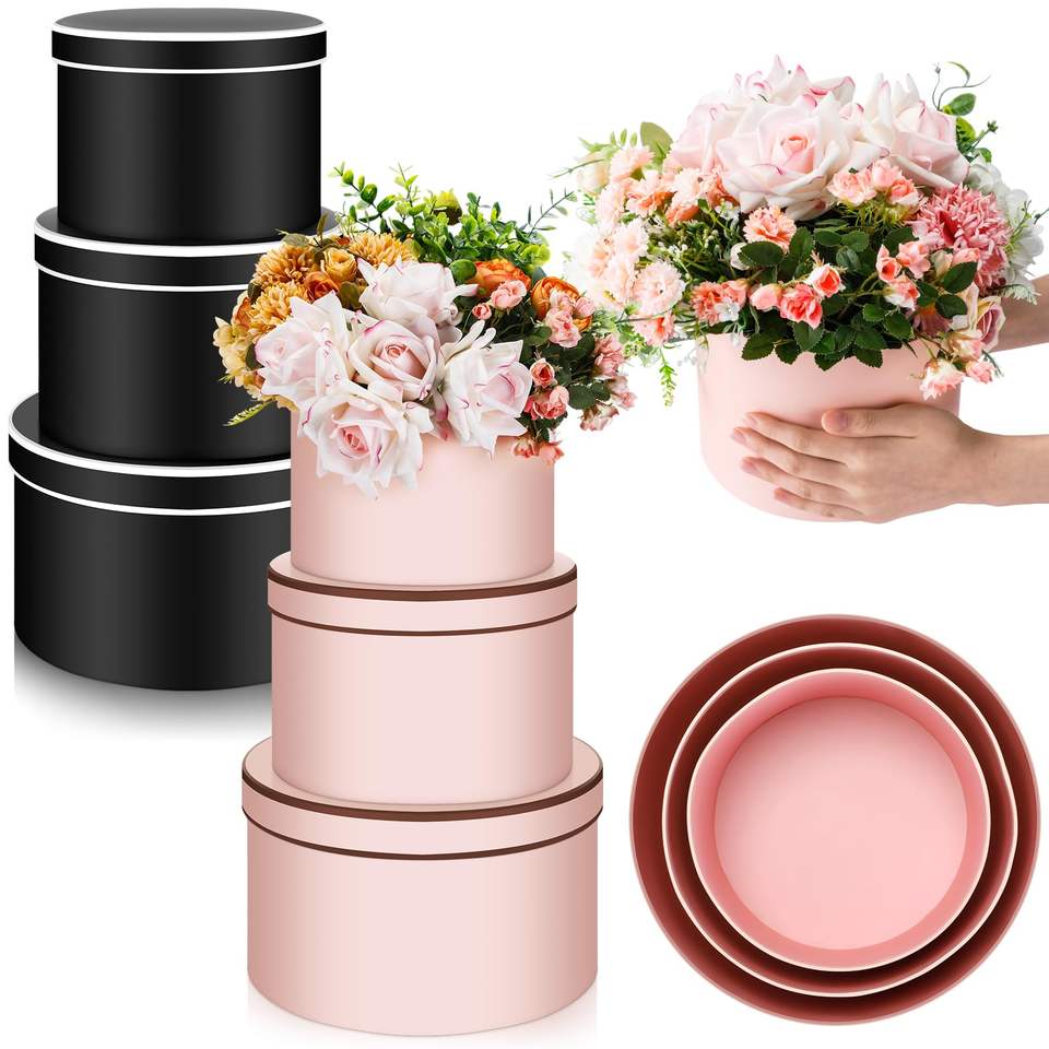 Boîte d'emballage cadeau en carton à baril rond de luxe portable à transporter à la main ensemble de feuilles d'or revêtement UV estampage pour emballage de fleurs