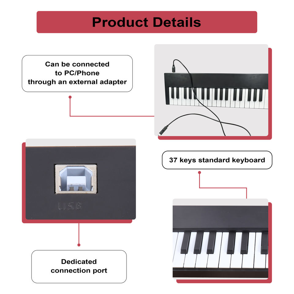 Nom du produit:Orgue électrique portable 37 touches, clavier numérique MIDI, instrument de musique