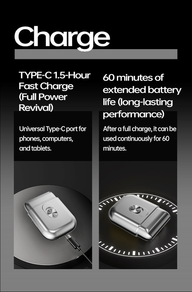 Mini rasoir électrique portable sans fil à grille oscillante pour hommes, idéal pour les voyages, avec chargement rapide Type-C et grille de lames flottante