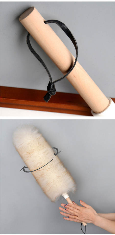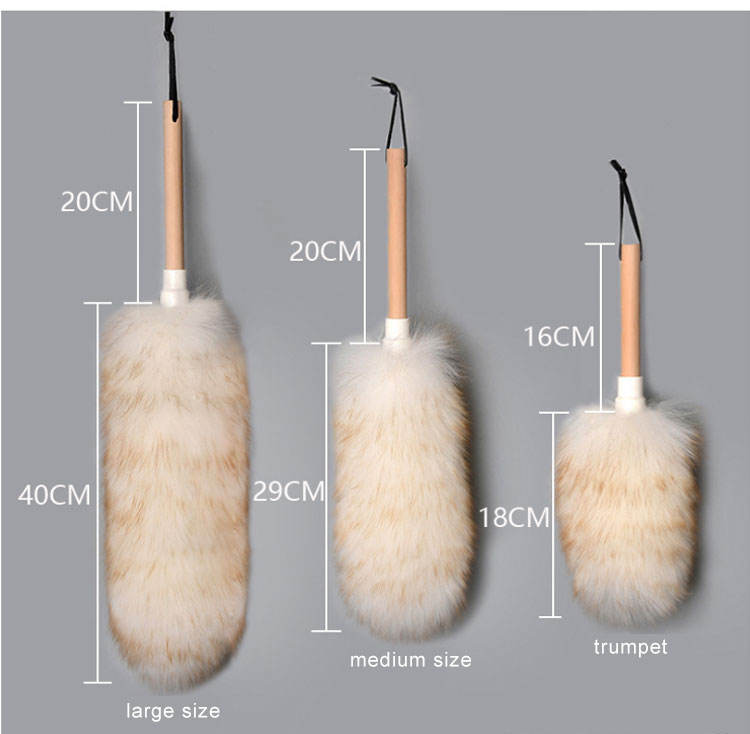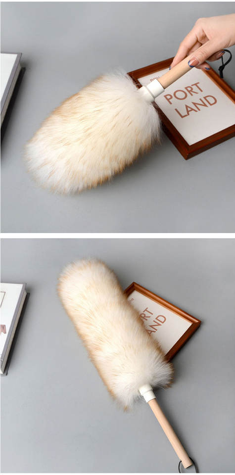 Duster électrostatique en laine d'agneau miniature portable avec manche en bois pour usage domestique et automobile
