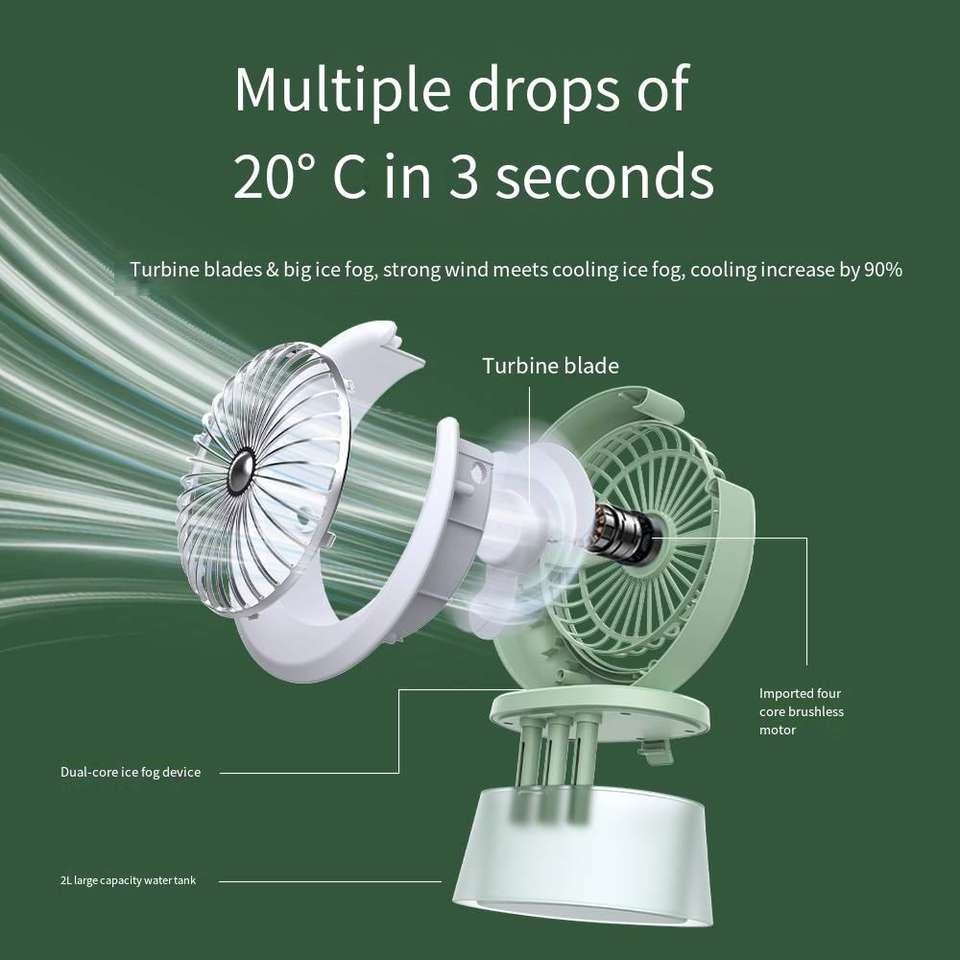 Ventilateur de climatisation personnel mini portable avec lumière LED, 3 vitesses de vent et modes de brumisation, refroidisseur d'air évaporatif alimenté par USB