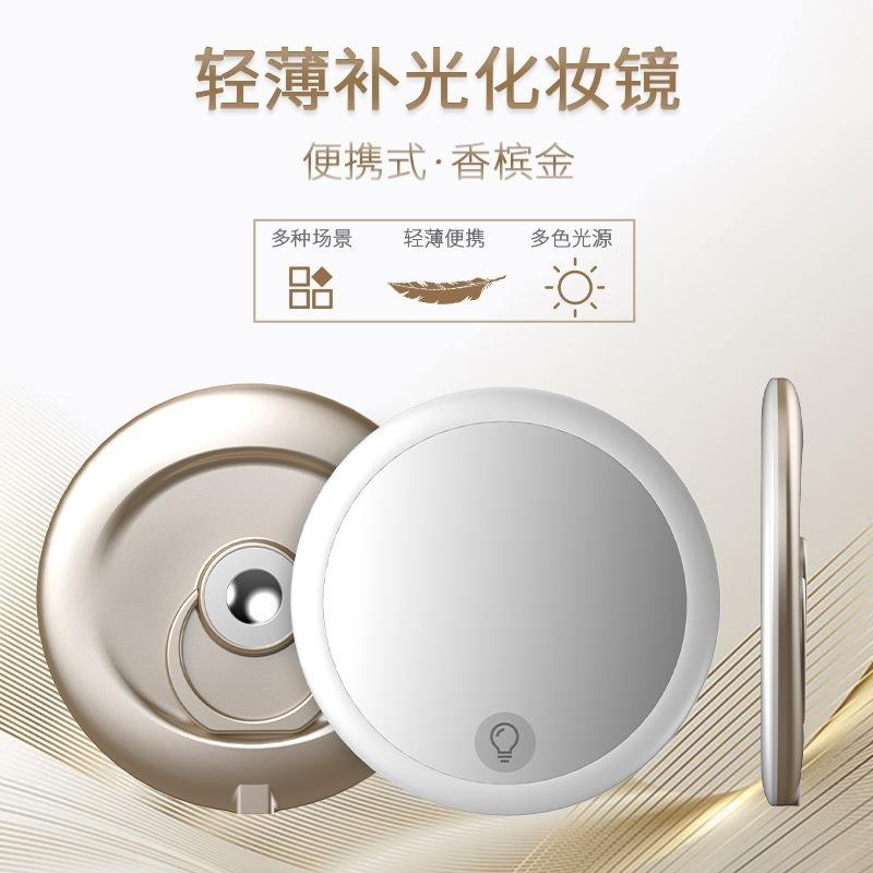 Miroir de maquillage LED rond portable mini avec chargement USB, fixation magnétique, gradation progressive