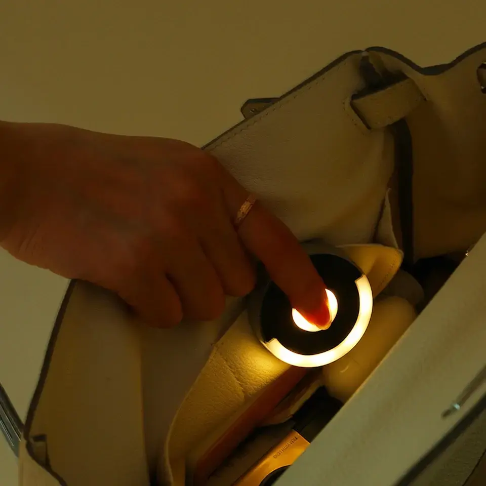 Mini lampe ronde portable avec capteur automatique, commande tactile et clip dorsal pour sac à main, sac à main, éclairage intérieur