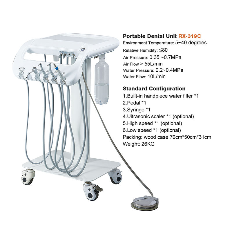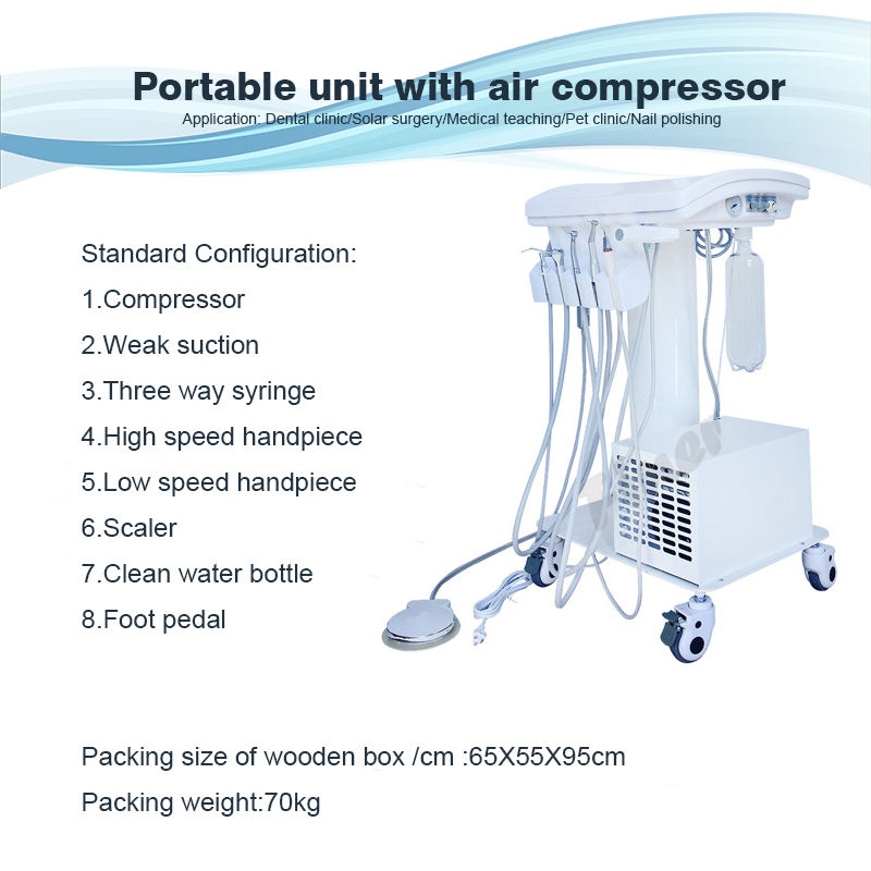 Chariot mobile portatif d'unité dentaire pour l'unité dentaire vétérinaire de turbine avec le compresseur d'air