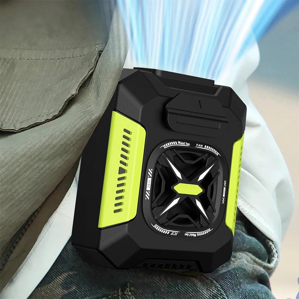 Ventilateur portable à suspendre à la taille, grand flux d'air, pour extérieur, avec batterie externe et éclairage LED, idéal pour le camping