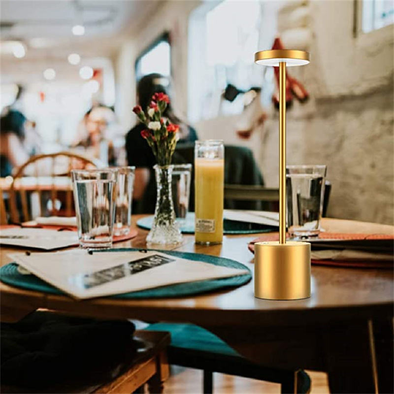 Lampe de table sans fil moderne en aluminium avec LED à intensité variable, batterie rechargeable par USB, pour hôtel, bar, salle à manger