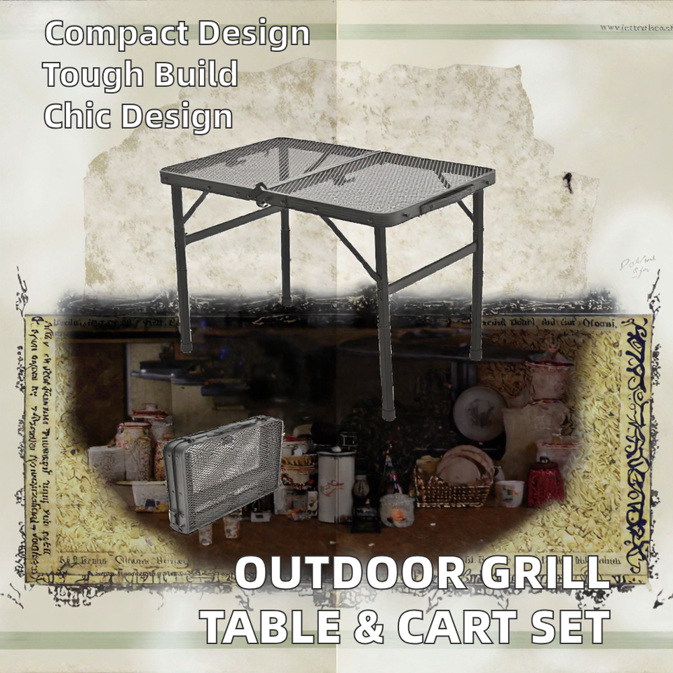 Table de gril portable de conception moderne avec chariot de gril inclus et table d'appoint pour la cuisine en plein air Accessoires de barbecue incontournables