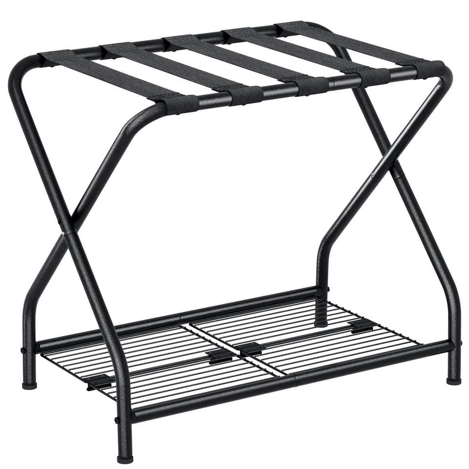 Porte-bagages en métal pliant moderne Portable avec sangles antidérapantes pour le stockage de la chambre d'hôtes et les valises de la chambre d'accueil