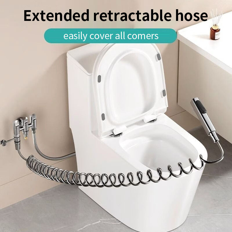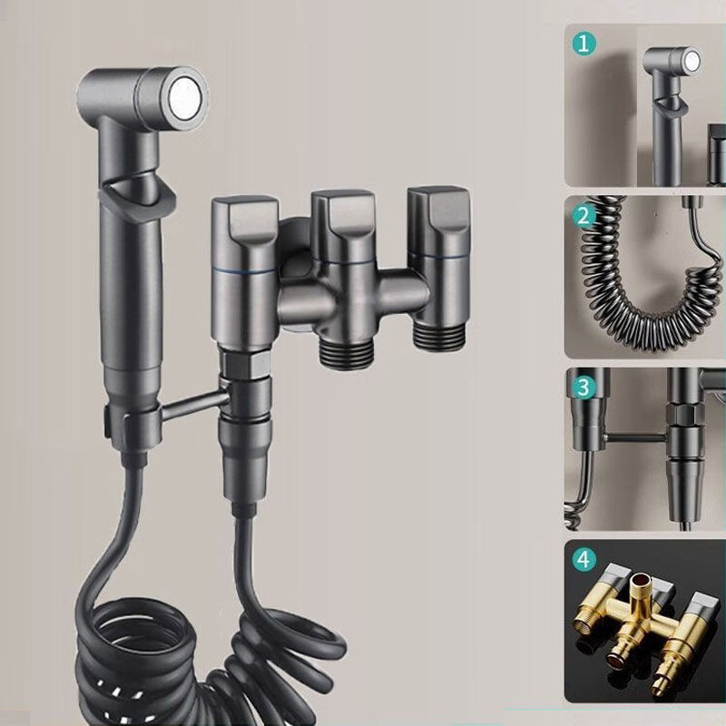 Pulvérisateur de bidet portable moderne en acier inoxydable, mural, à jet vertical, installation facile, trois sorties pour appartement