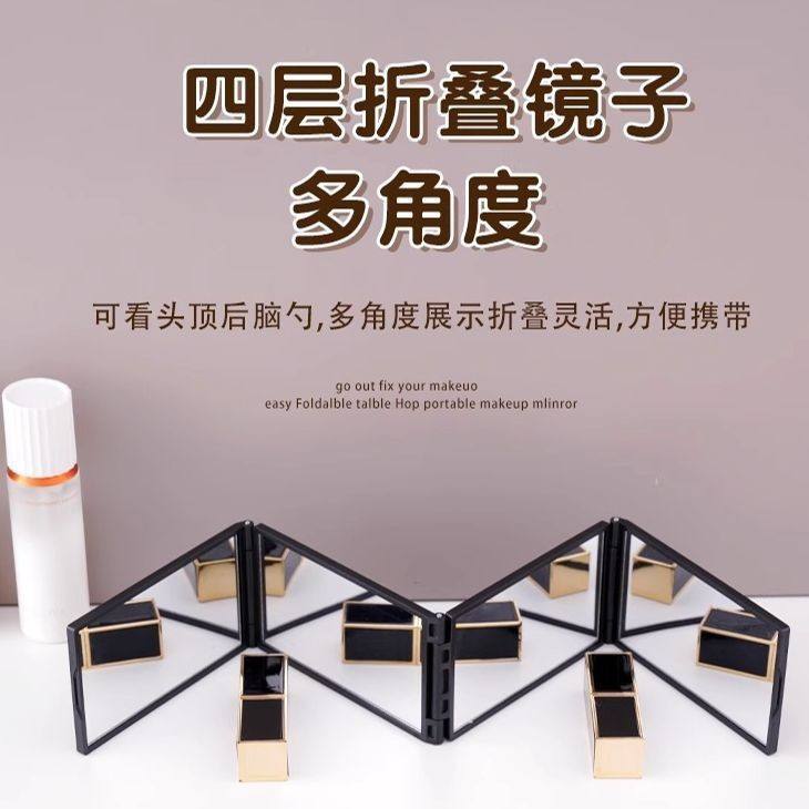 Portable Multi Angle Folding Makeup Mirror Black Glass Square Tabletop For Travel And Personal Use