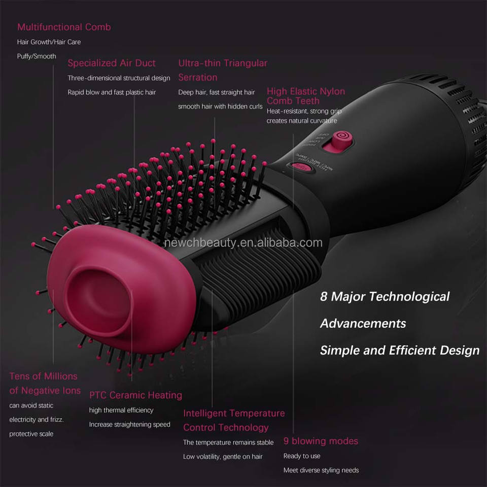 Type de texte:Sèche-cheveux multifonction, lisseur, fer à boucler, peigne