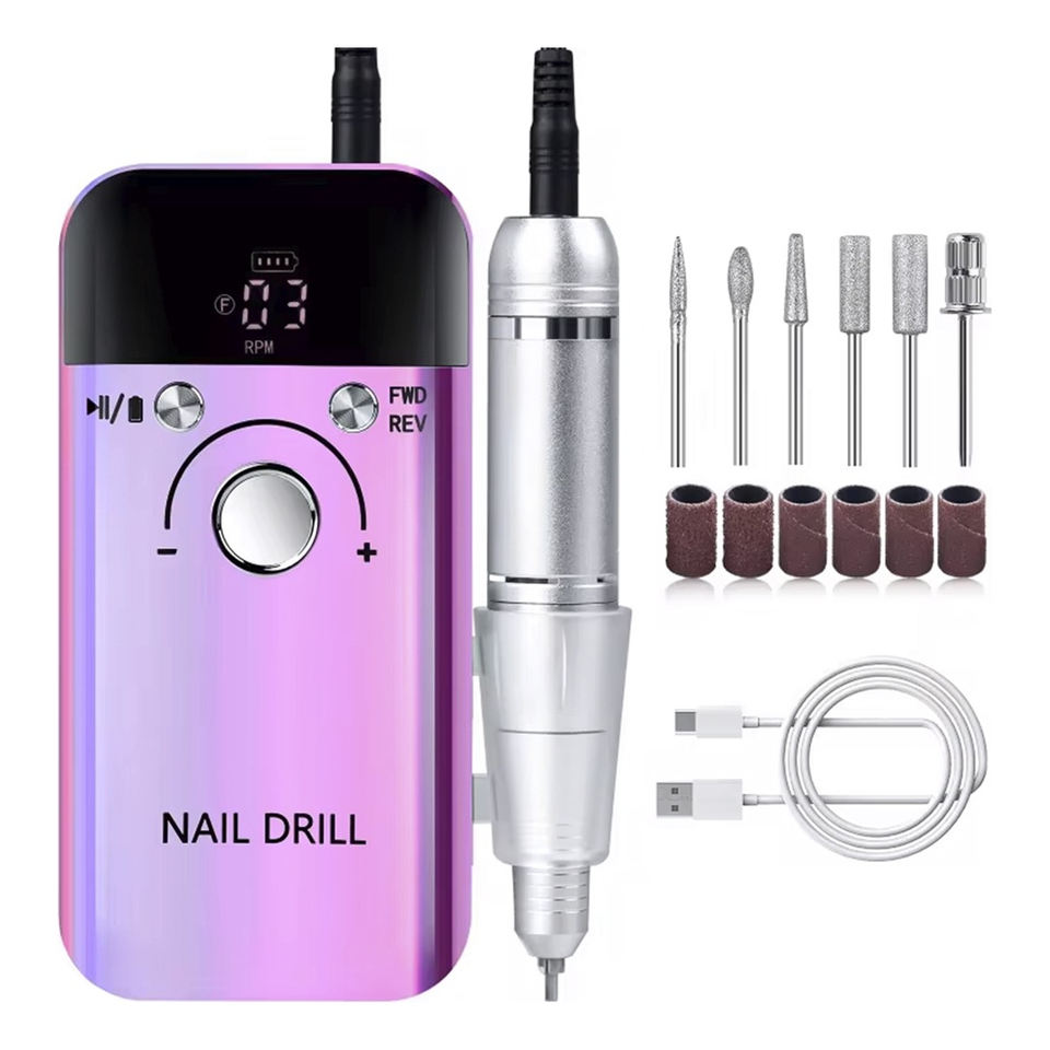Perceuse à ongles portable 45000 tr/min, rechargeable par USB, outil de manucure, jeu de forets diamantés pour soins professionnels des ongles