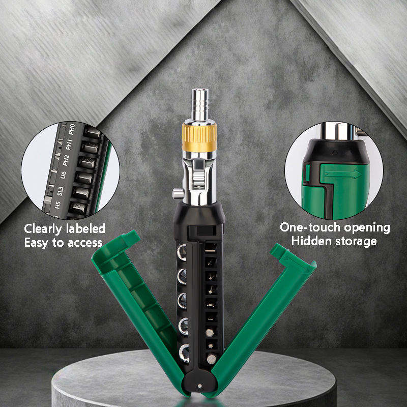 Jeu de tournevis industriel portable DIY OEM à cliquet, couple élevé, embout cruciforme multi-angle, finition chromée, acier au carbone