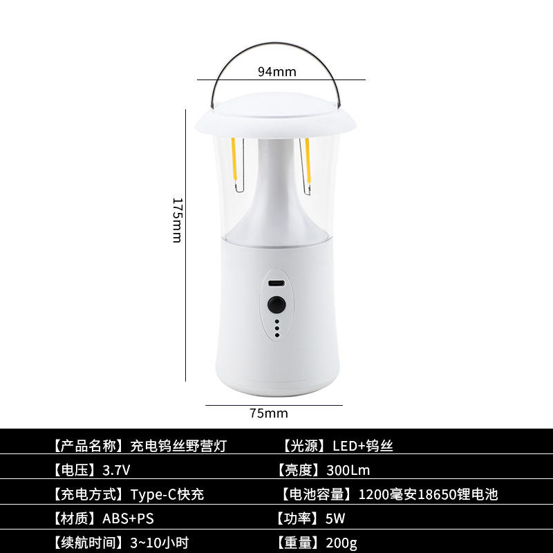 Lanterne de camping portable d'extérieur, lampe LED rechargeable avec poignée pour utilisation en tente, couleur noir et blanc cassé