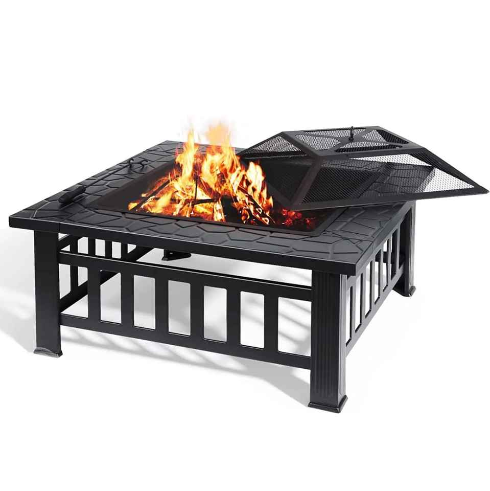 Brasero d'extérieur portable avec écran anti-étincelles, foyer à bois en acier pour patio, jardin, camping, chauffage de feu de camp avec pique à bois