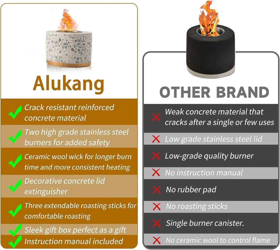 Bol de foyer de table en béton portable extérieur et intérieur avec carburant au bioéthanol pour rôtir des bâtons Smores pour une utilisation extérieure en intérieur