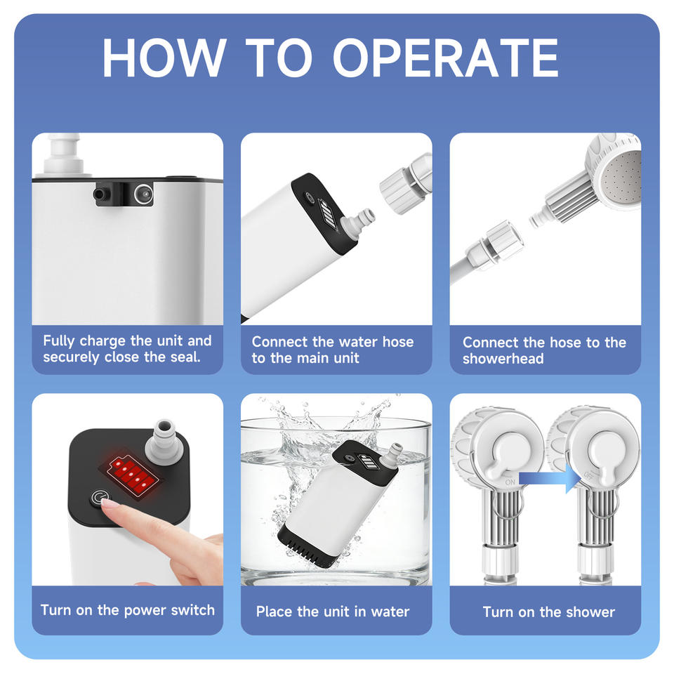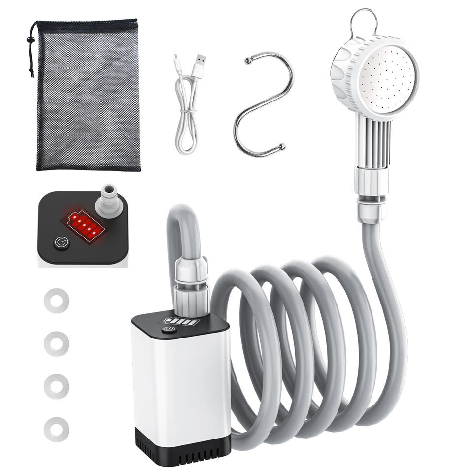 Système de douche portable d'extérieur rechargeable avec batterie 5200 mAh, affichage numérique intelligent, étanche, pour voyages, animaux de compagnie, randonnée, camping-car