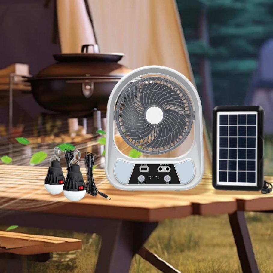 Ventilateur solaire portable d'extérieur avec panneau de charge solaire et éclairage, nouveauté 2025, vente chaude, 3 vitesses rotatives