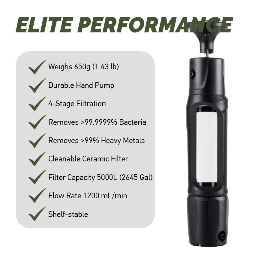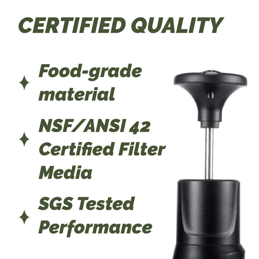 Filtre à eau portable pour sports de plein air avec charbon actif manuel pour l'utilisation du pichet