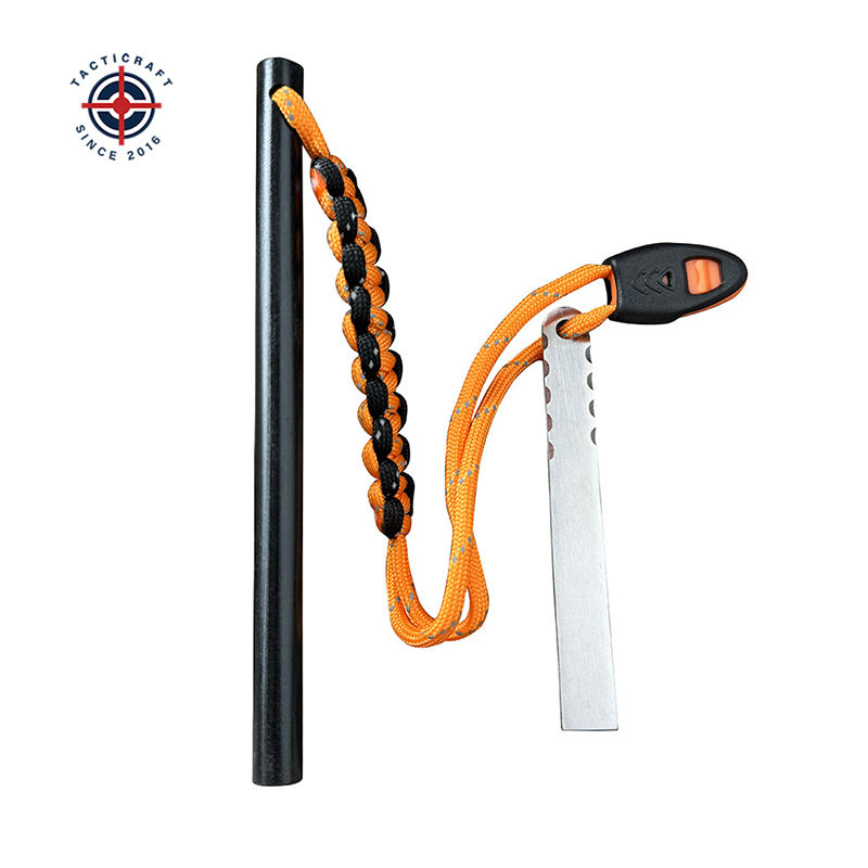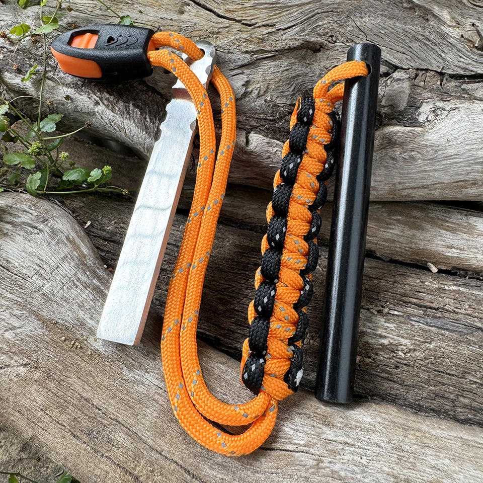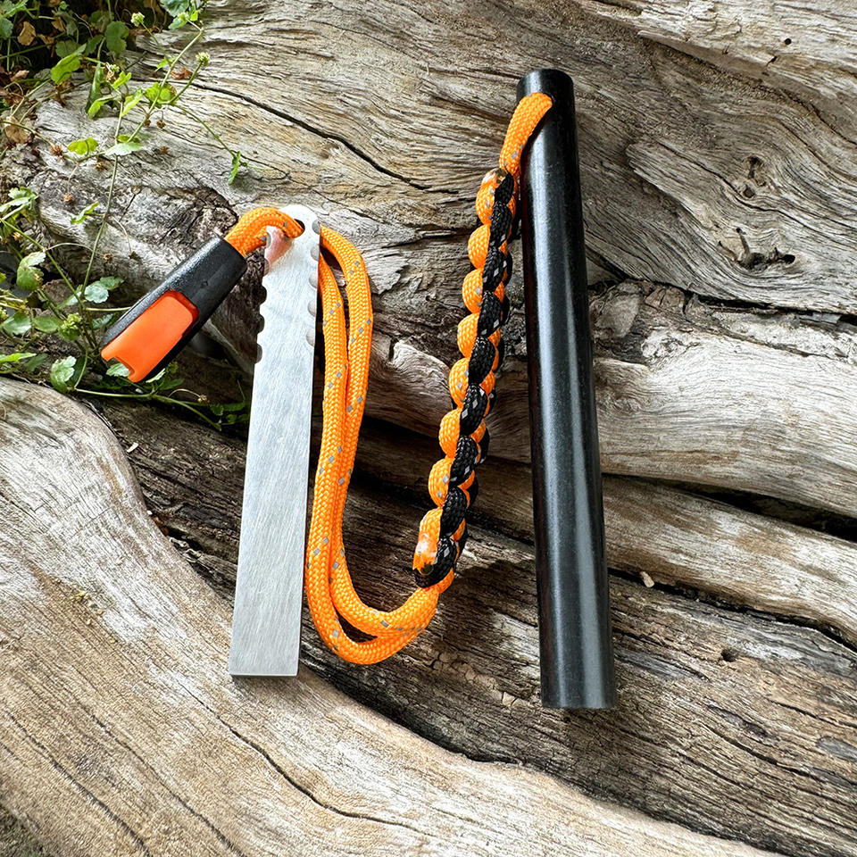 Allume-feu de survie portable pour l'extérieur avec manche en bois et grattoir pour le camping en pleine nature