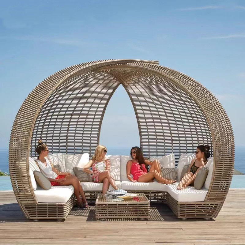 Meubles de jardin en rotin portables pour l'extérieur, lit de repos et chaises longues pour la cour, le parc ou le jardin d'hôtel