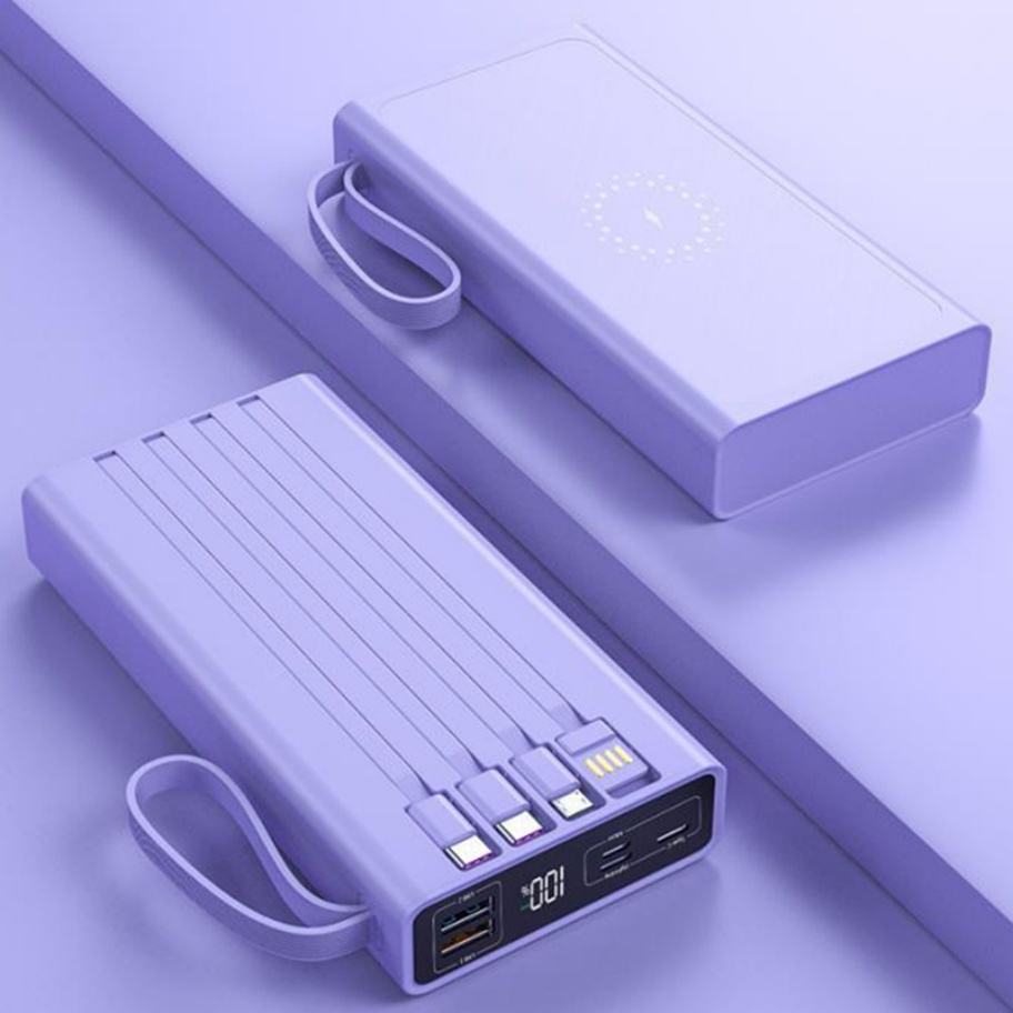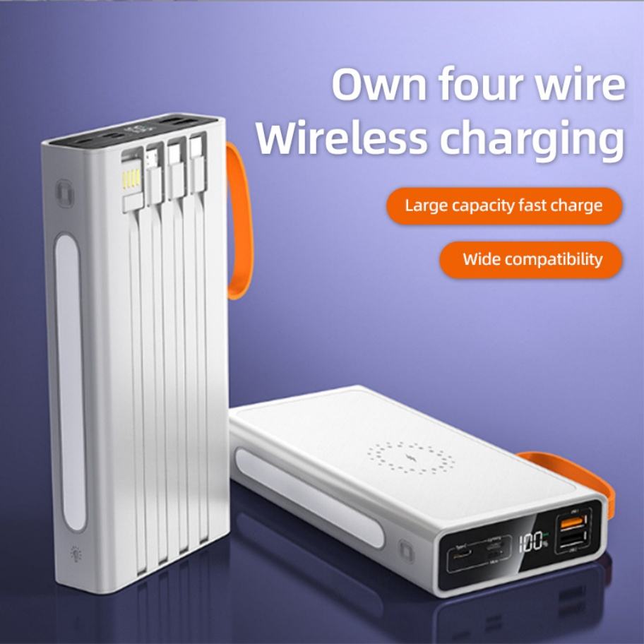 Batterie externe portable sans fil pour l'extérieur 5W avec câble intégré, poignée, écran LED, grande capacité, 60000mAh