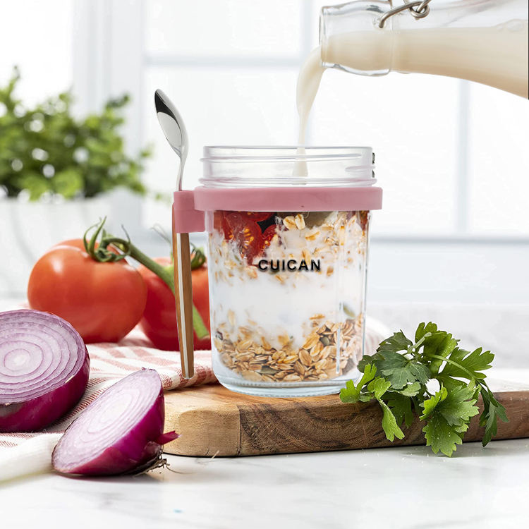 Bocaux d'avoine de nuit portables avec couvercle et cuillère 10 oz 300ml bocaux Mason en verre avec couvercle pour céréales