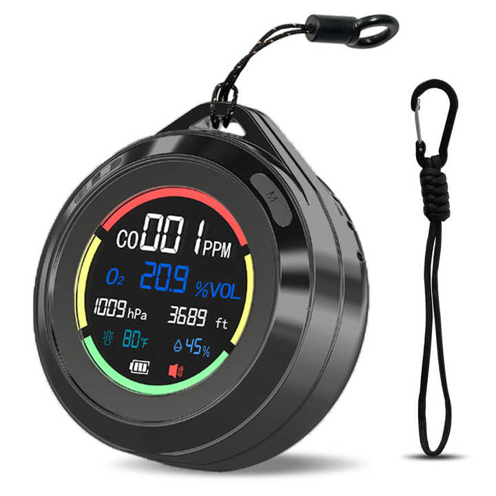 Détecteur de monoxyde de carbone portable, mini O2/CO/pression/température/humidité, capteur d'alarme pour camping en plein air, voiture de camping-car d'intérieur