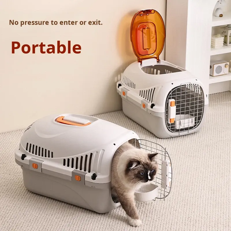 Boîte de transport portable en PP et fer pour chats et chiens, utilisation en extérieur, en voiture, sac d'expédition pour avion