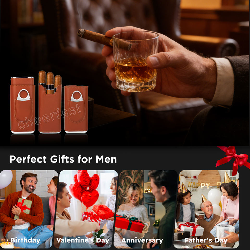 SélectionnerCouleur: Étui à cigares de voyage en cuir PU marron